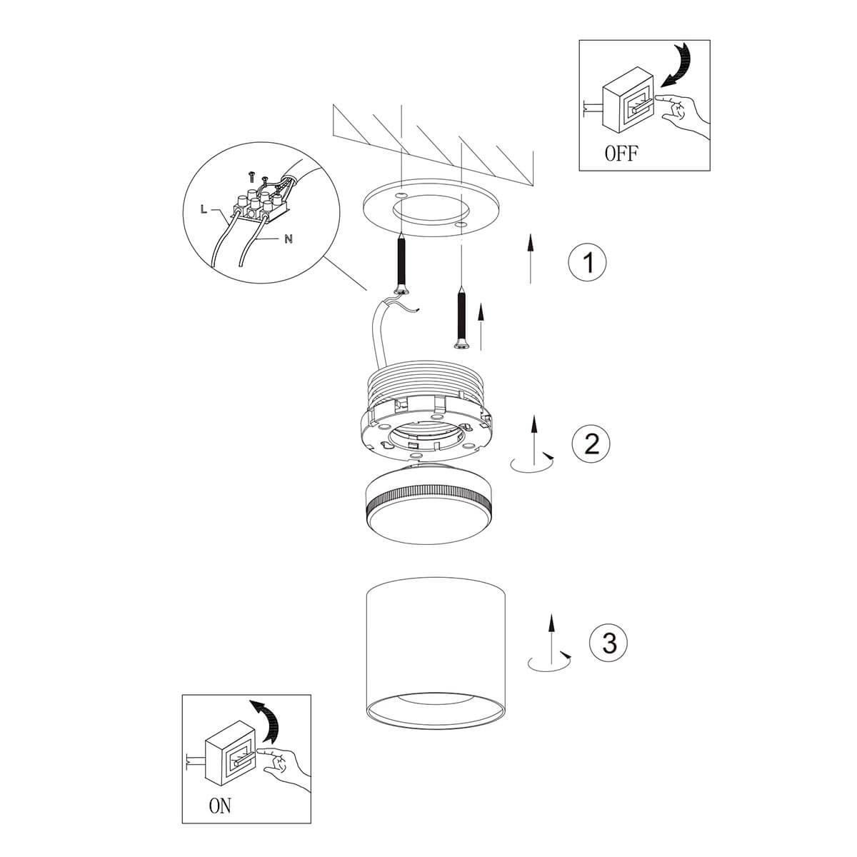 | Место установки | На потолок, на стену |