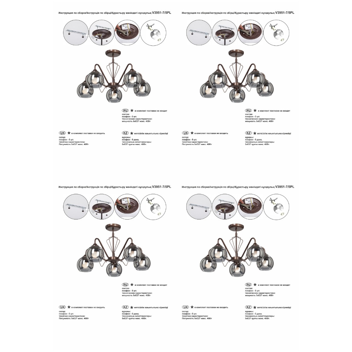 | Количество ламп | 5 |