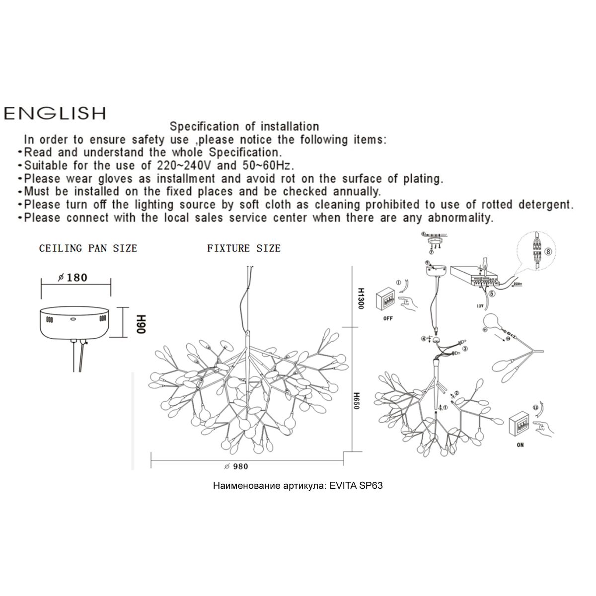 | Длина подвеса, мм | 1300 |