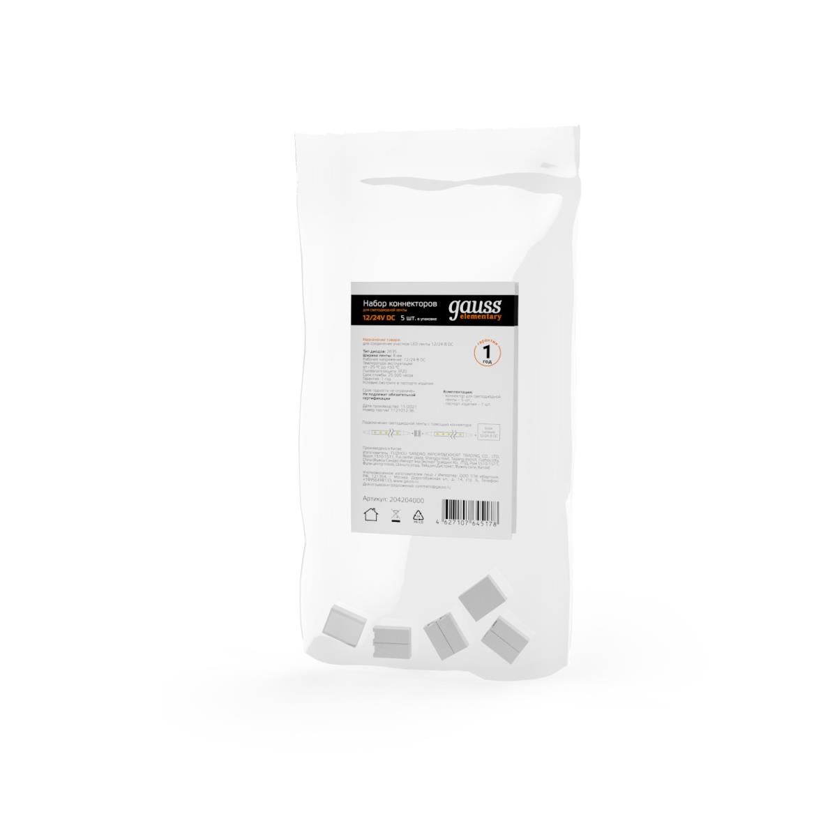 Коннектор для светодиодной ленты 2835/60SMD Gauss (5 шт) 204204000