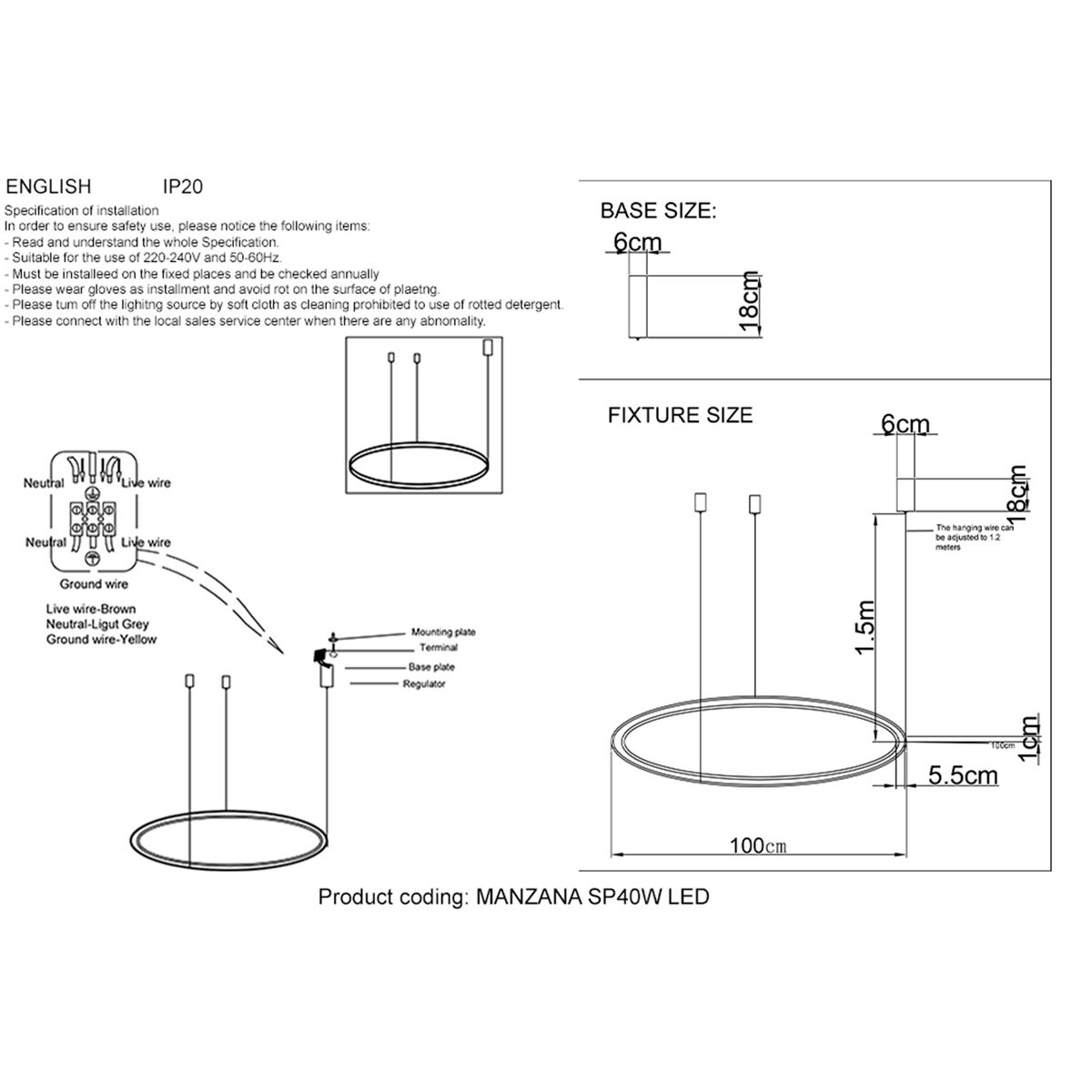| Длина подвеса, мм | 1500 |